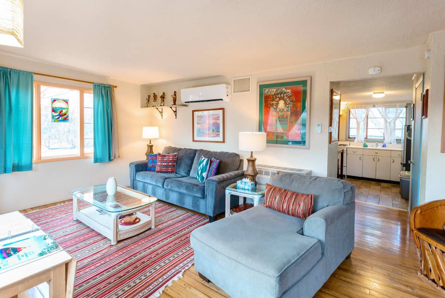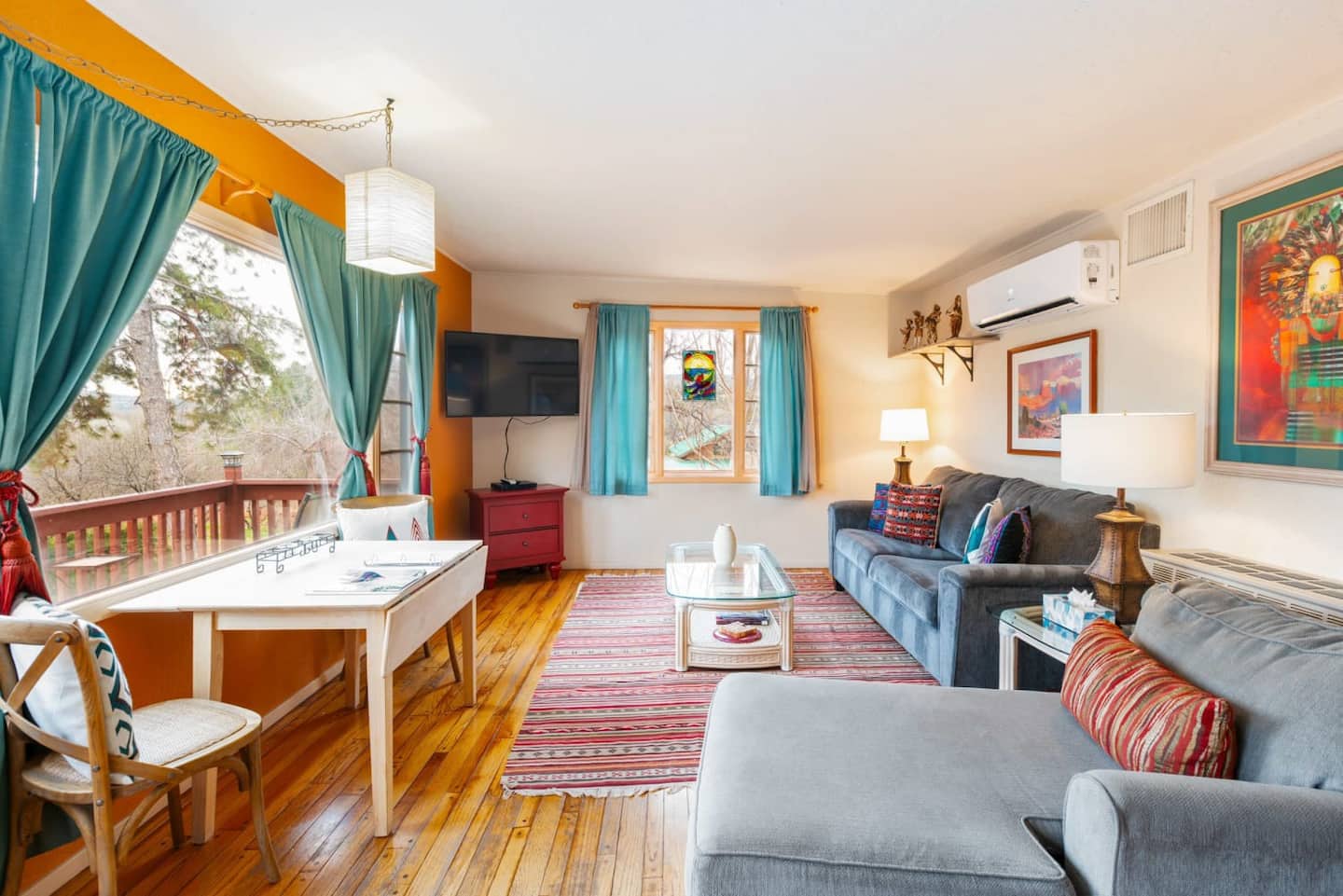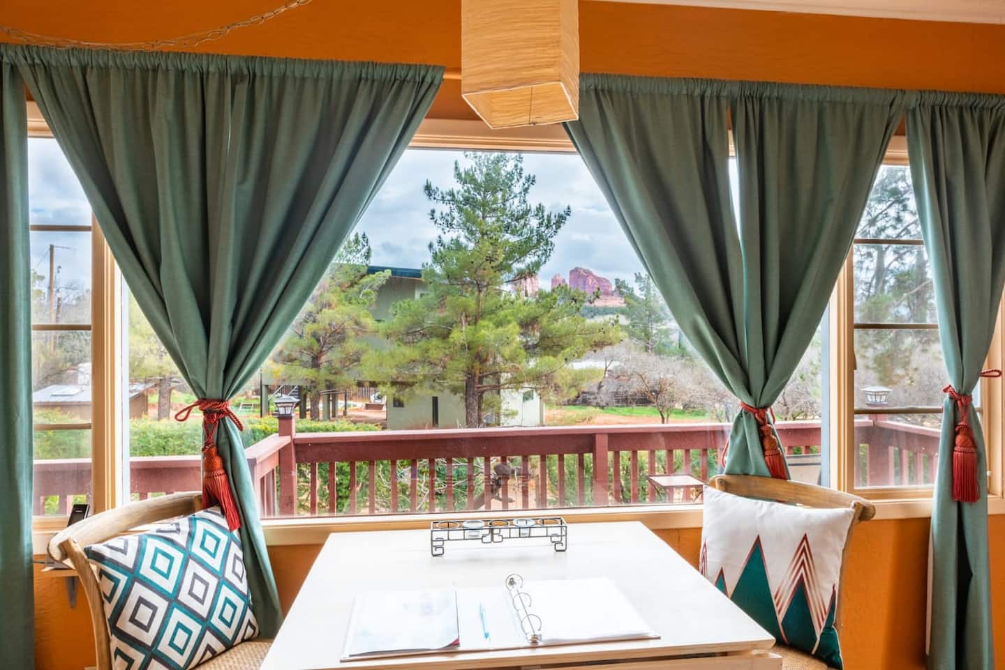 With views of Cathedral Rock, this charming 1 bedroom apartment comes complete with a queen size bed, kitchen, full bathroom, living room, Wi-Fi, deck, and propane grill. Extra roll-away bed is available upon request. Please note, this is an upstairs unit with one flight of stairs.