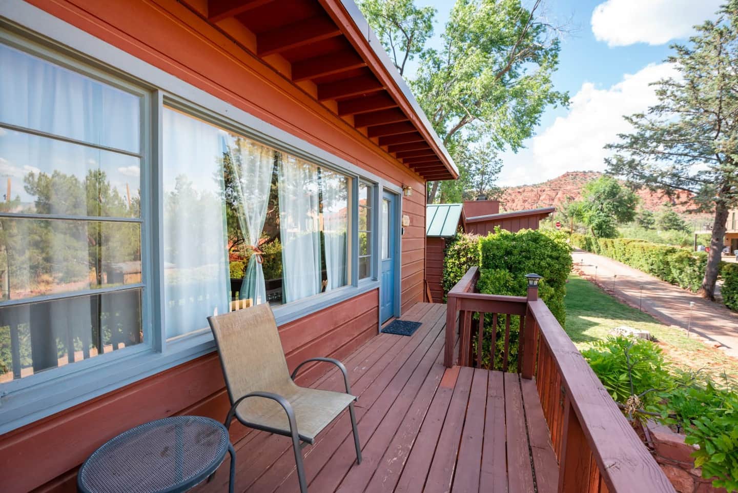 Situated among some of the most beautiful grounds in Sedona just off Red Rock Loop Road. This is a one bedroom suite on the second floor with a full size kitchen and private balcony.
