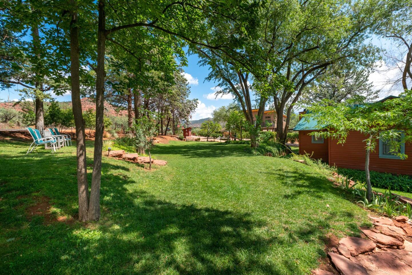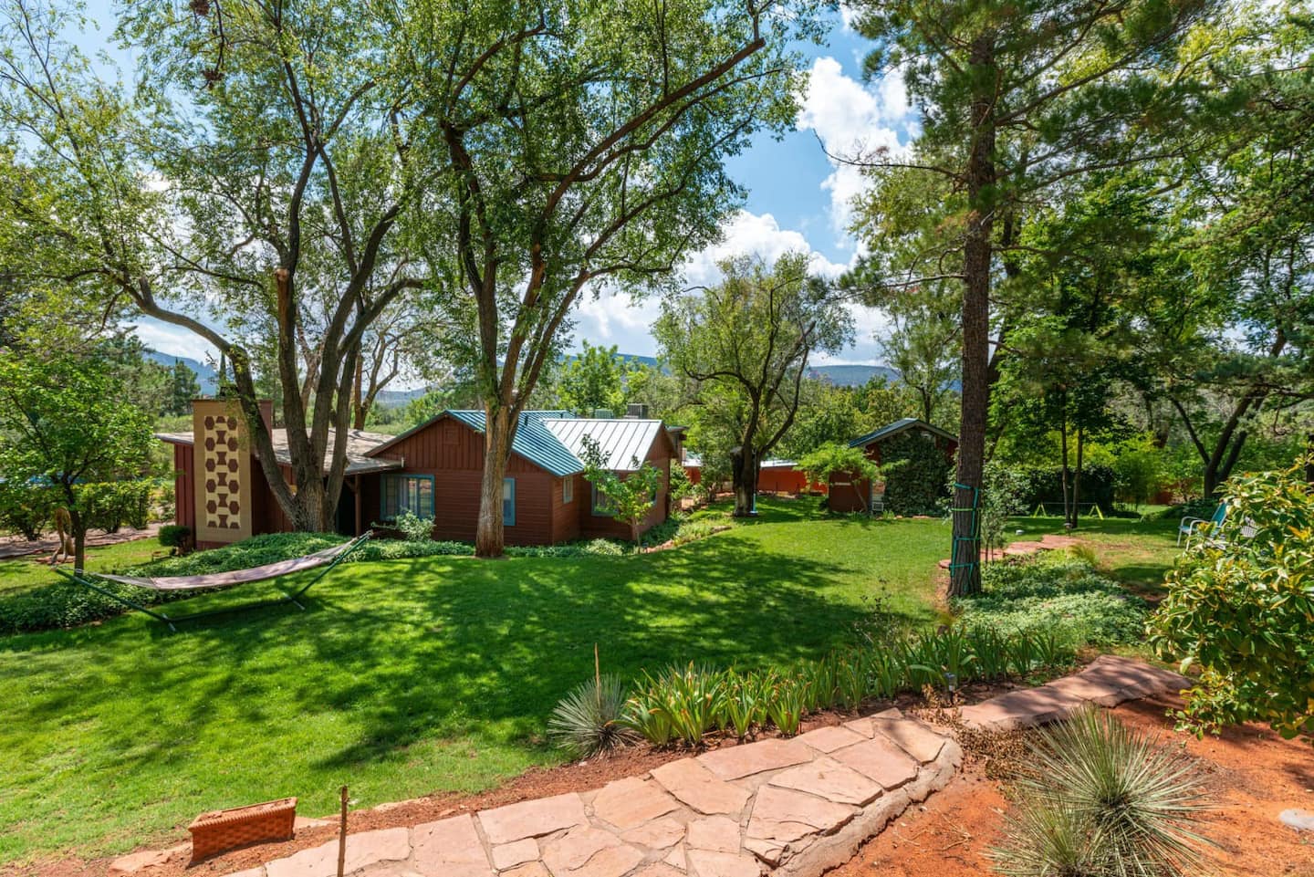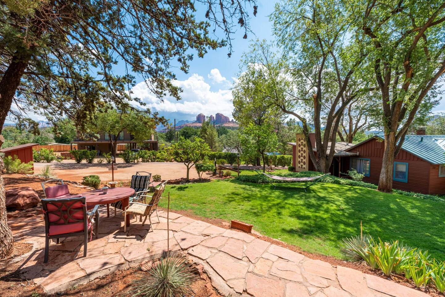 The Casita is a part of The Cathedral Rock Lodge & Retreat Center - Comfortably situated amid green lawns, terraced gardens, & wooded grounds, with stunning red rock views from the beautiful lawns.