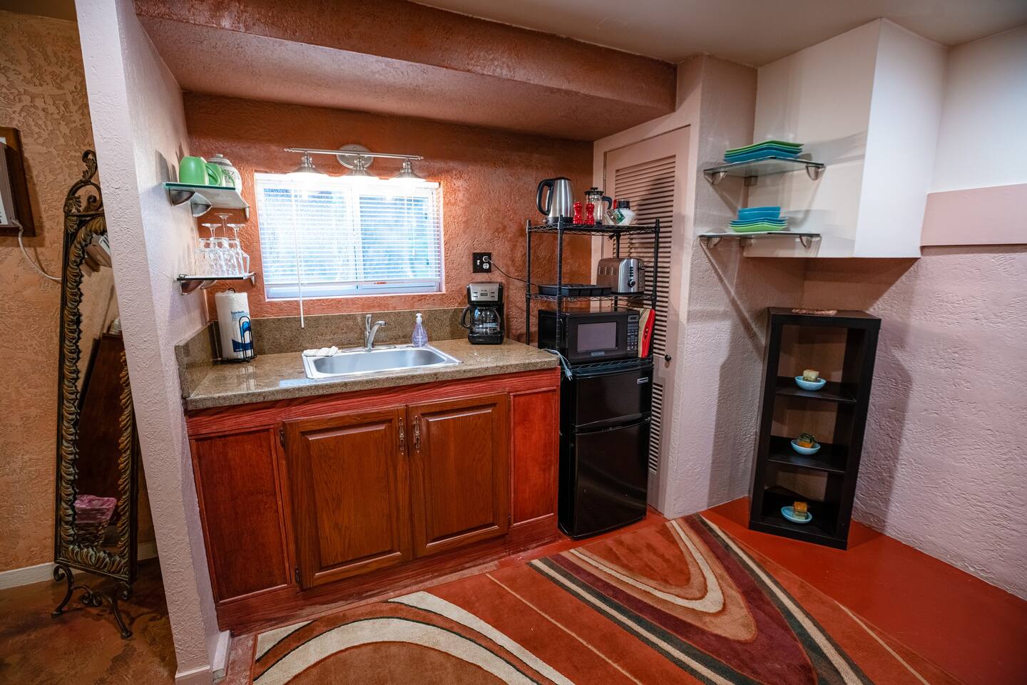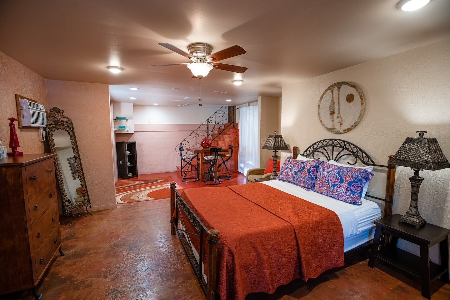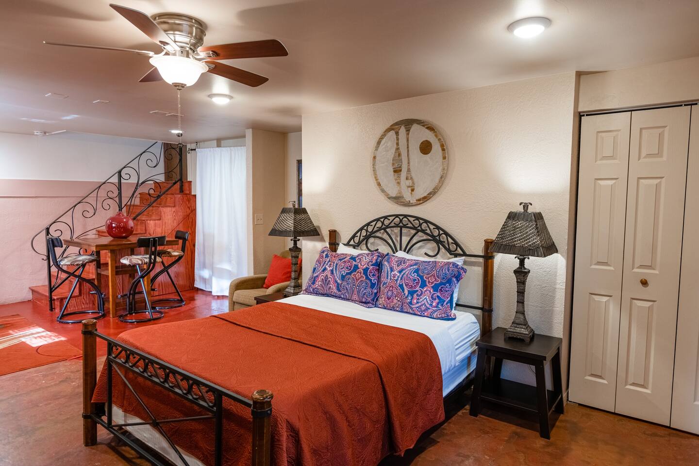The Casita is a Comfortable Studio Apartment with a queen bed, private bath with shower and tub, and kitchenette. The perfect affordable unit for a single person or couple.