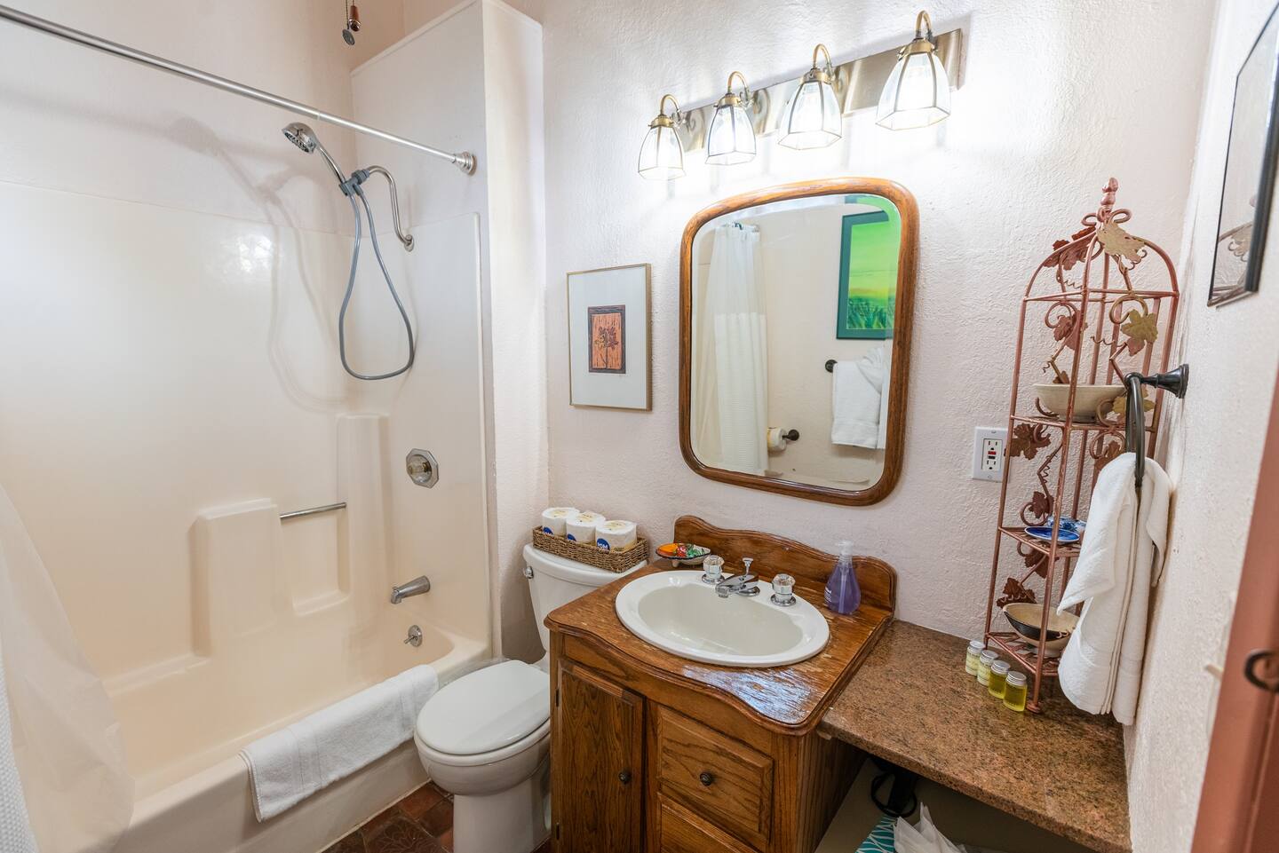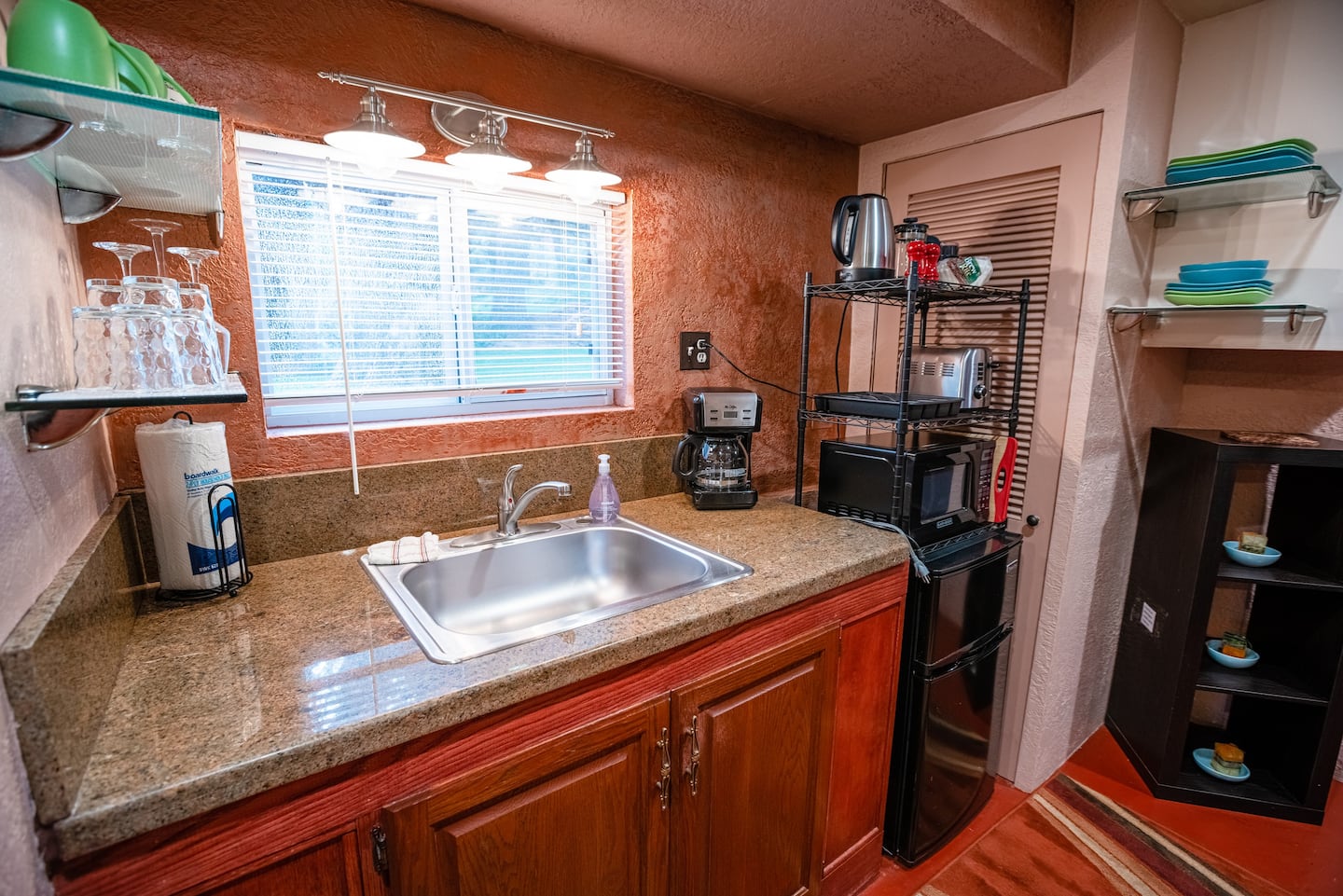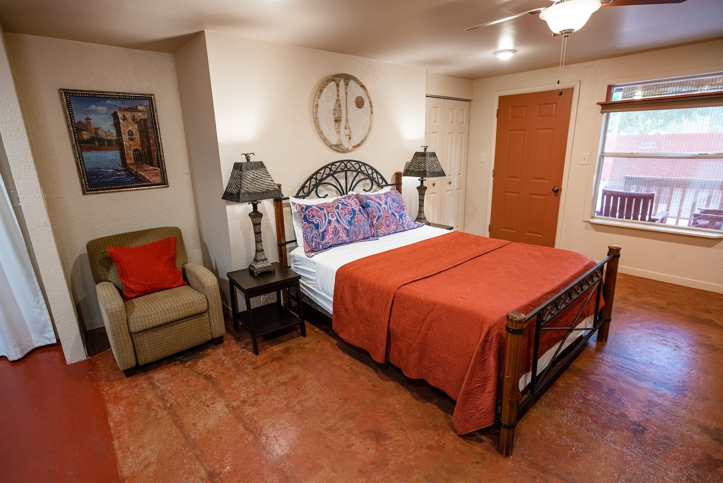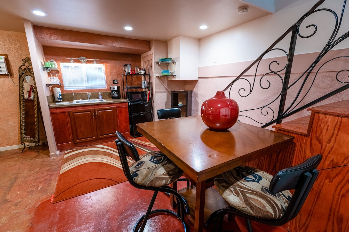 The Casita is a Comfortable Studio Apartment with a queen bed, private bath with shower and tub, and kitchenette. The perfect affordable unit for a single person or couple.