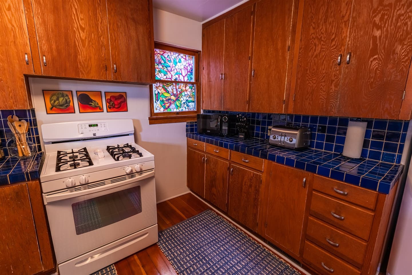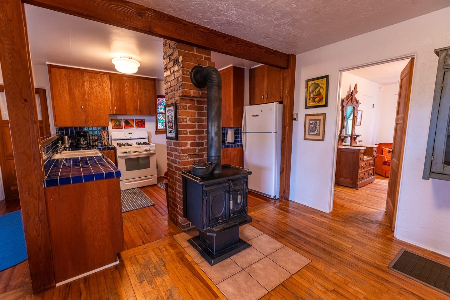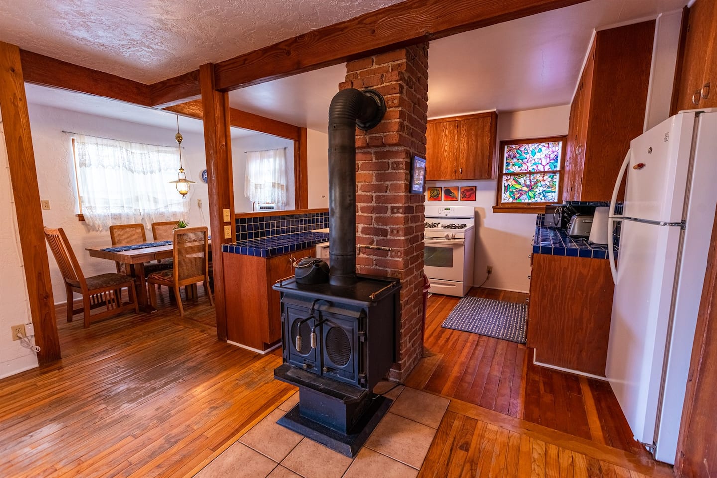 - **Full Kitchen**: Fully equipped with modern appliances and ample counter space, the kitchen is perfect for preparing home-cooked meals. It features charming wooden cabinetry and a rustic yet functional design.