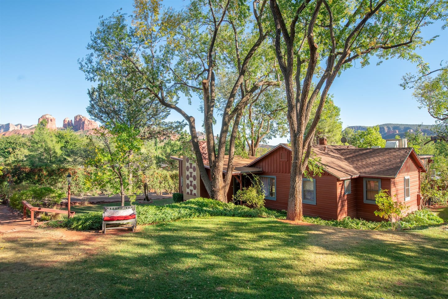Welcome to the Cathedral Rock Lodge Homestead House, a charming short-term rental that offers a perfect blend of rustic charm and modern comfort. Nestled amid green lawns, terraced gardens, and wooded grounds, this homestead provides stunning views nestled between Cathedral Rock and the red rock vistas. Ideal for a peaceful retreat or a fun-filled family vacation, the house features: