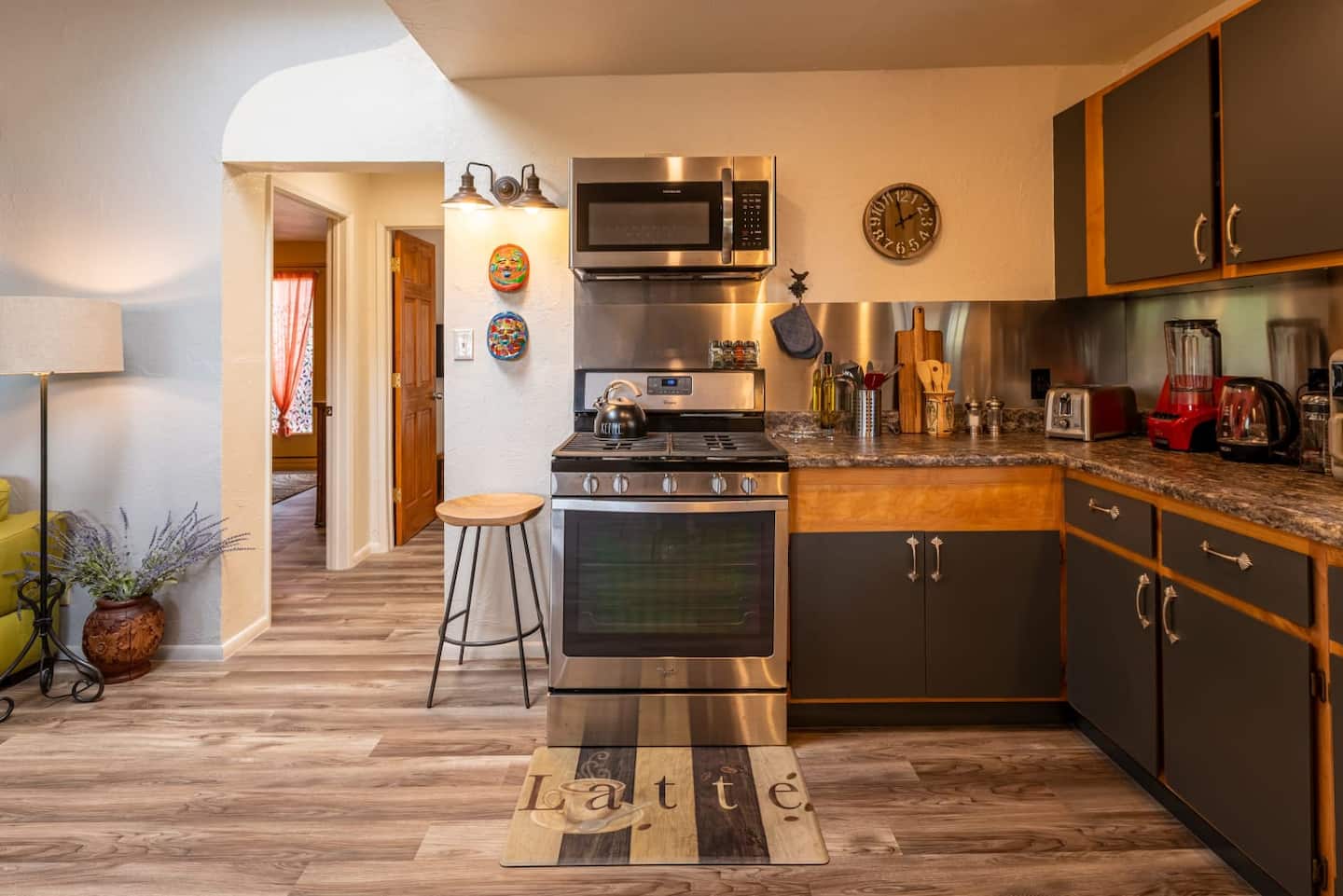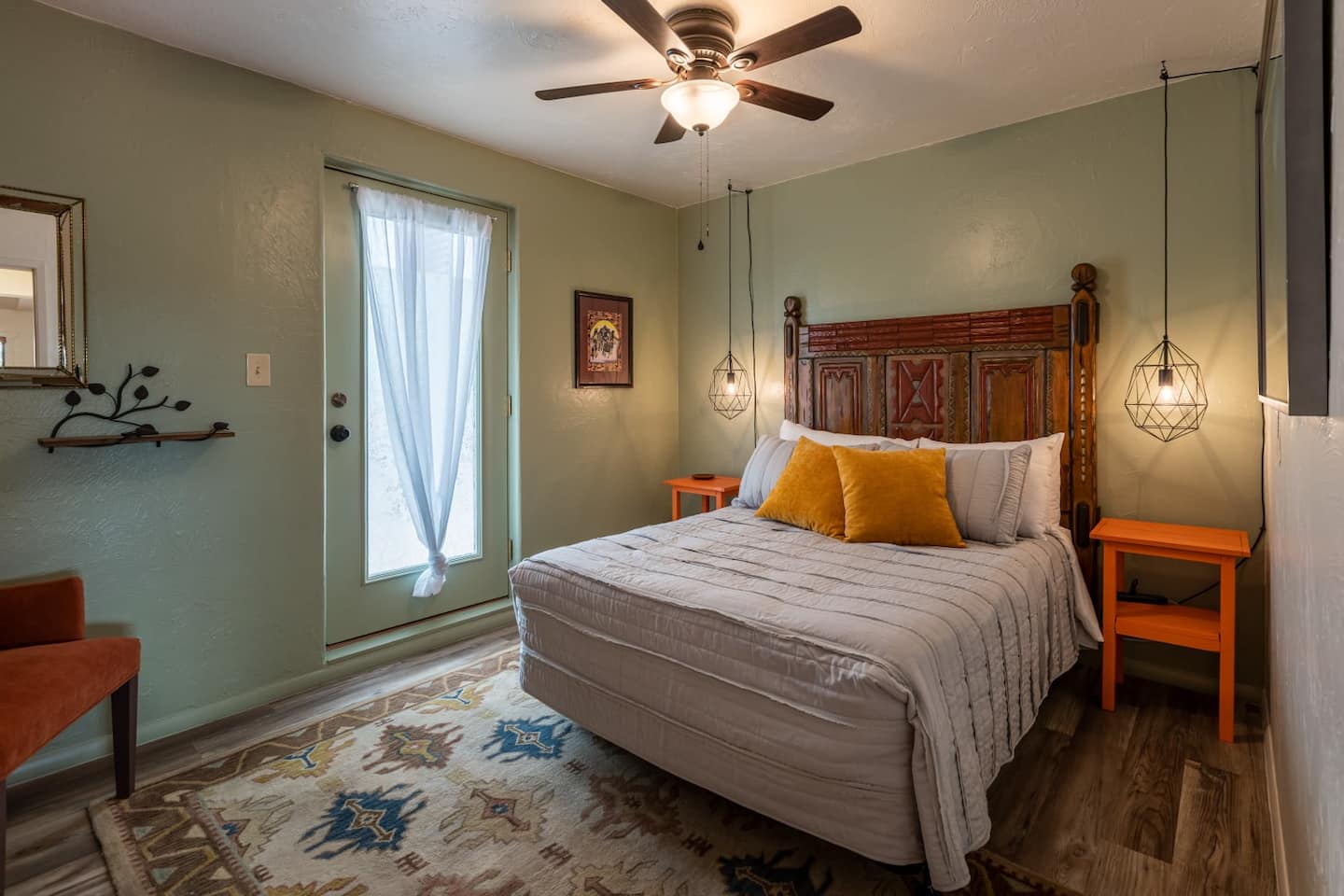 You will immediately sense its distinguished intimate atmosphere that brings the comforts of a home away from home, including a generously-equipped kitchen, full bathroom, and soft living room. The Southwest Suite is freshly remodeled, well lit, and inviting. While you enjoy a cocktail on the deck, you will be stunned by the surrounding mountain views. Here at your disposal, the suite has fast Wi-Fi, ideal for smart working, movie streaming for all current +Apps. The Suites include a discounted pass to Arizona’s finest Copper Ionized Pools, plus jacuzzi, massage therapy and infrared sauna at the Soulistic Healing Center—just a five-minute walk from our Suites. We are assured your time with us will be uplifting and pleasurable in our creative and well-kept accommodations!